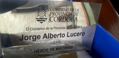 A un héroe de Malvinas de Justiniano Posee le enviaron una placa desde el gobierno de la provincia de Córdoba con la cita: Q.E.P.D