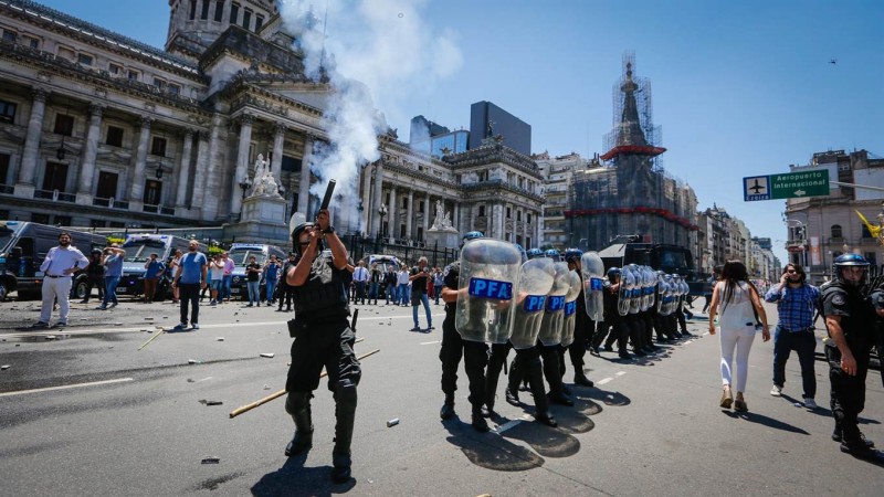 Ante la sesión especial para el tratamiento de la Reforma Previsional en la Cámara de Diputados, que finalmente fue levantada, se vivió una jornada tensa con paros y protestas en rechazo al proyecto que modifica la fórmula del pago de haberes jubilatorios (ver: Luego de una acalorada discusión, levantan la sesión por la reforma previsional) A minutos de comenzar la sesión especial convocada por el oficialismo, Gendarmería disparó balas de gomas y tiros de agua contra manifestantes en contra de la sanción de la ley.