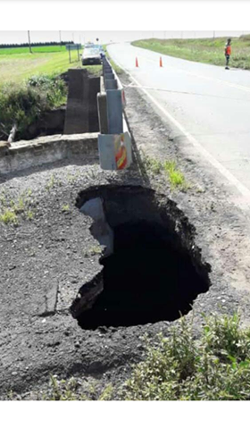 En la tardecita noche del Domingo el Consorcio Caminero, Consorcio Canalero acompañado de Vialidad Provincial estuvieron limpiando las ramas y troncos alojados debajo de la estructura que permite el paso de los vehículos el cual tapaba el paso del agua produciendo una especie de molino comiendo una parte de la ruta.