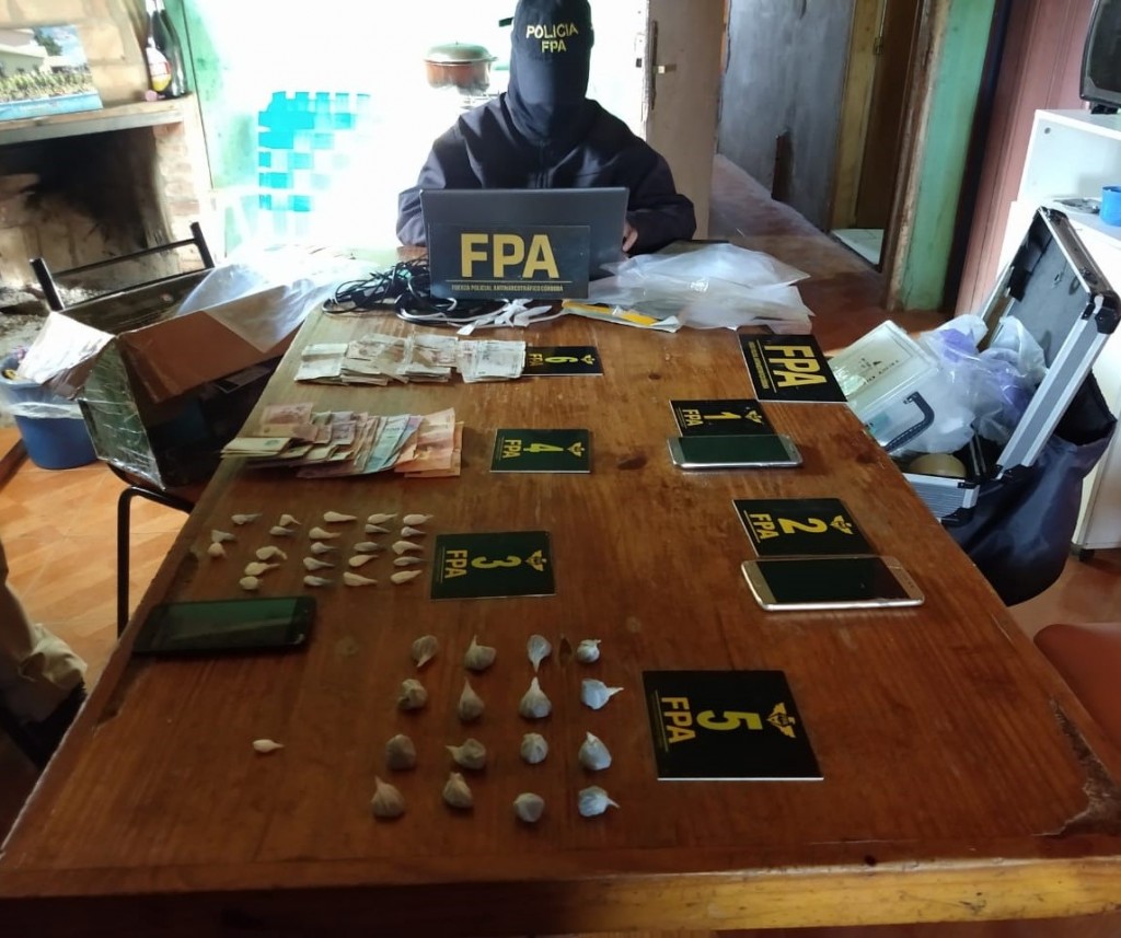 En los inmuebles, se incautaron varias dosis de cocaína, marihuana, dinero en efectivo ($8400), una motocicleta y elementos presuntamente relacionados al fraccionamiento y venta de sustancias ilícitas.