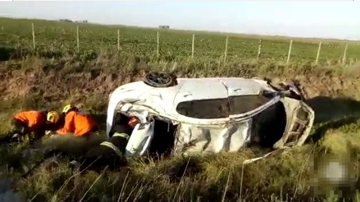 Por datos recogidos en el lugar el vehículo perdió el control sobre una curva pronunciada para terminar lejos de la carpeta asfática, sobre un zanjón entre pastizales cercanos al alambrado perimetral de un campo.